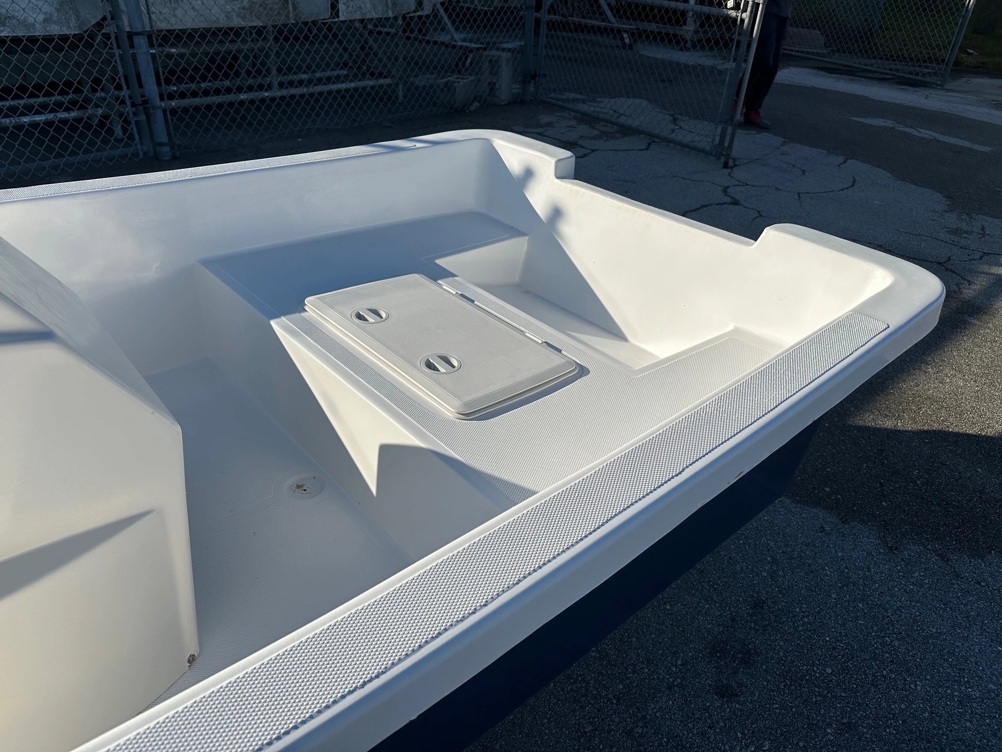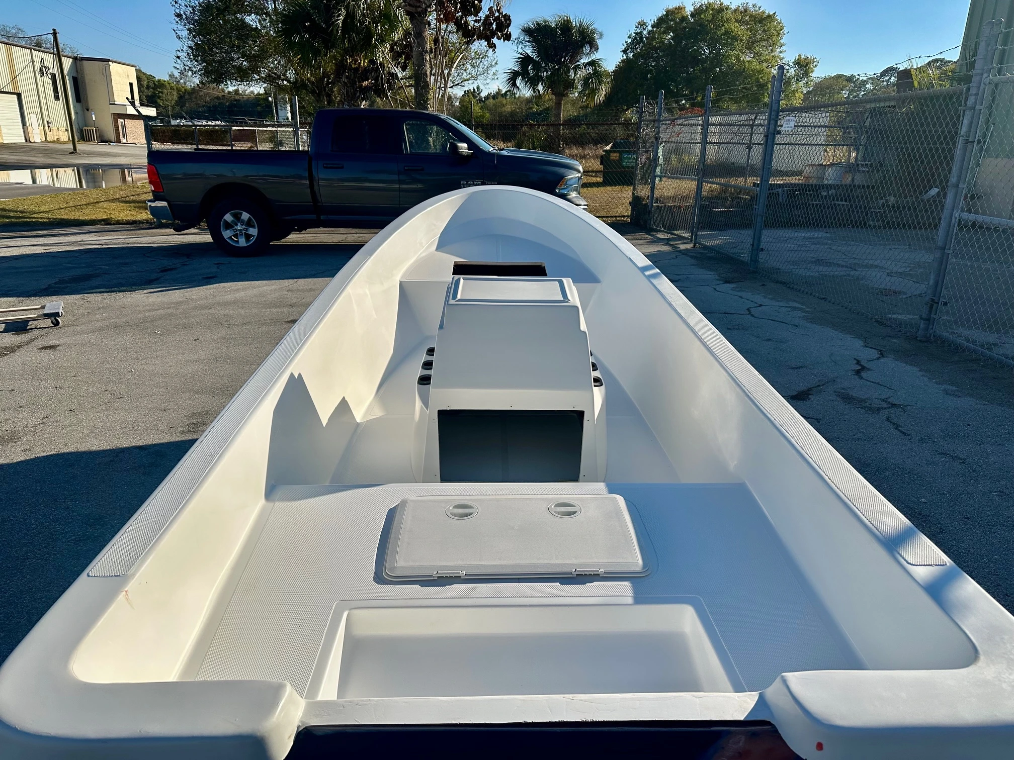 Introducing the newly designed 14 Skiff, ready for work or play. This low maintenance panga style hybrid boat sports one of the highest freeboard for its size. With the distinctive chines characteristic to the panga hull, you will also find this is one of the smoothest and driest shallow water skiffs on the water. With the ability to operate a tiller motor or have a true center console, you will find yourself in places most boats can't reach.