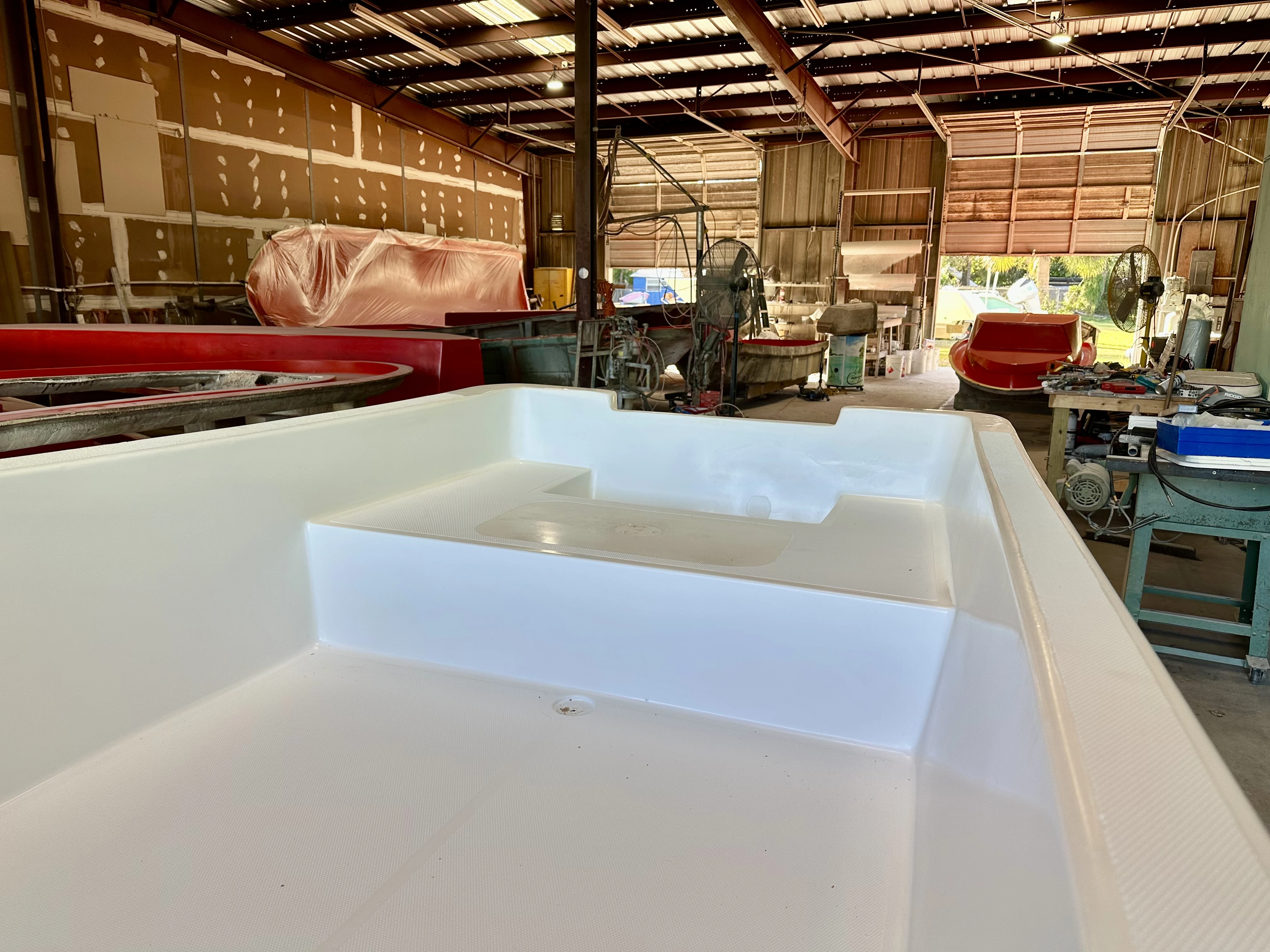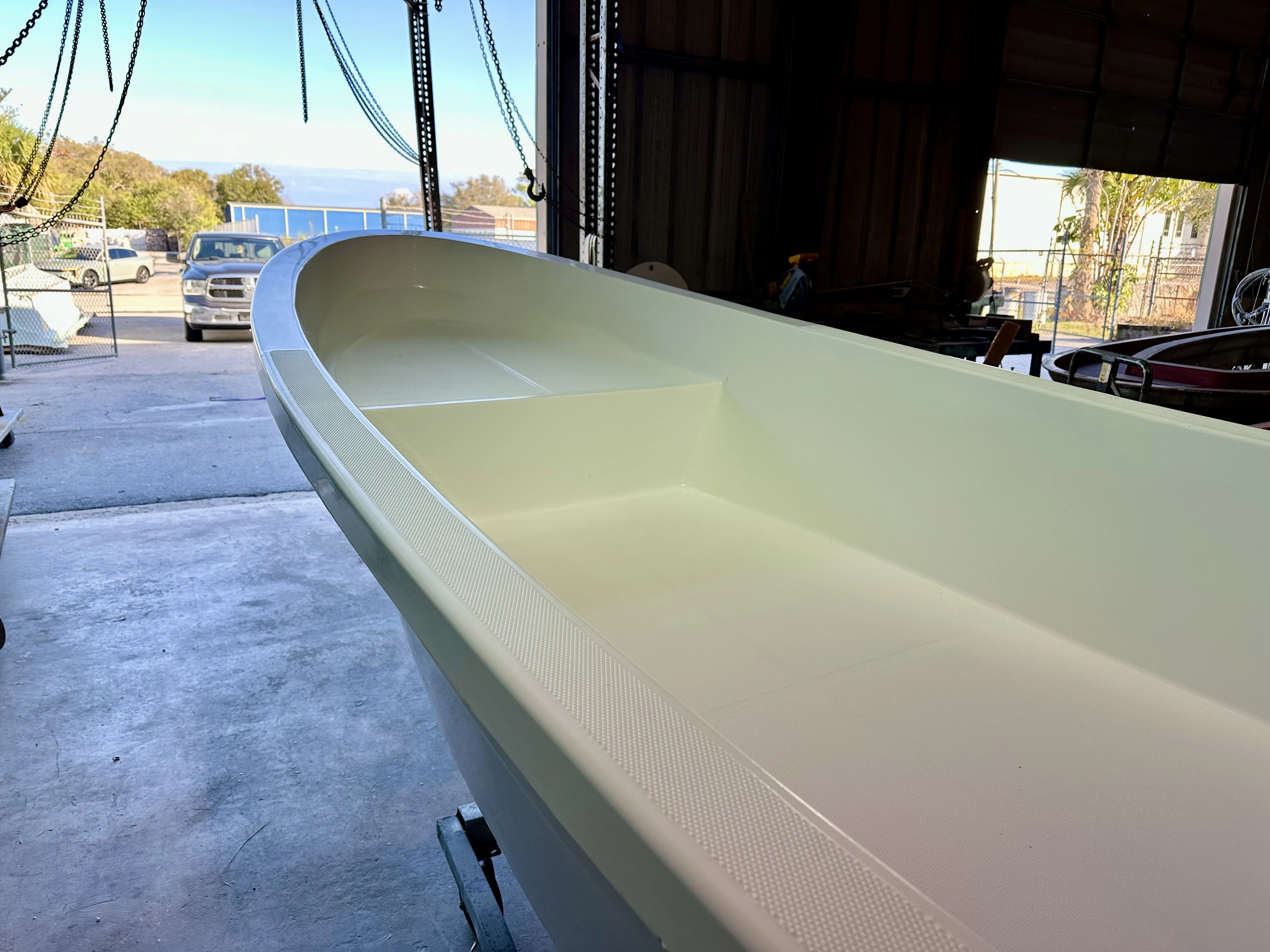 High bow design – ability to handle rough seas and minimizes the spray from coming on board. With this it allows the boat to have extra safety by preventing water from entering the boat in challenging conditions.
